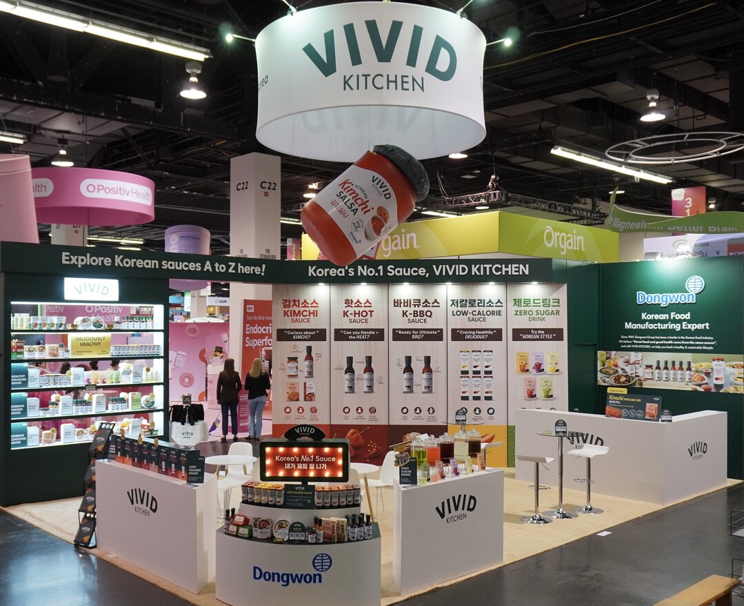 동원홈푸드는 ‘K소스의 모든 것’을 콘셉트로, ‘비비드키친’의 다양한 소스 제품을 선보였다. 발효식품인 김치를 접목한 김치 살사, 김치 치폴레 마요를 비롯해 고추장, 불고기 등 한식 조리 소스와 한국에서 1000만개 이상 판매된 저칼로리 소스 등이 대표적이다. 또 미국 현지 인플루언서와 협업해 비비드키친 소스를 활용한 요리 라이브 방송을 진행했다.