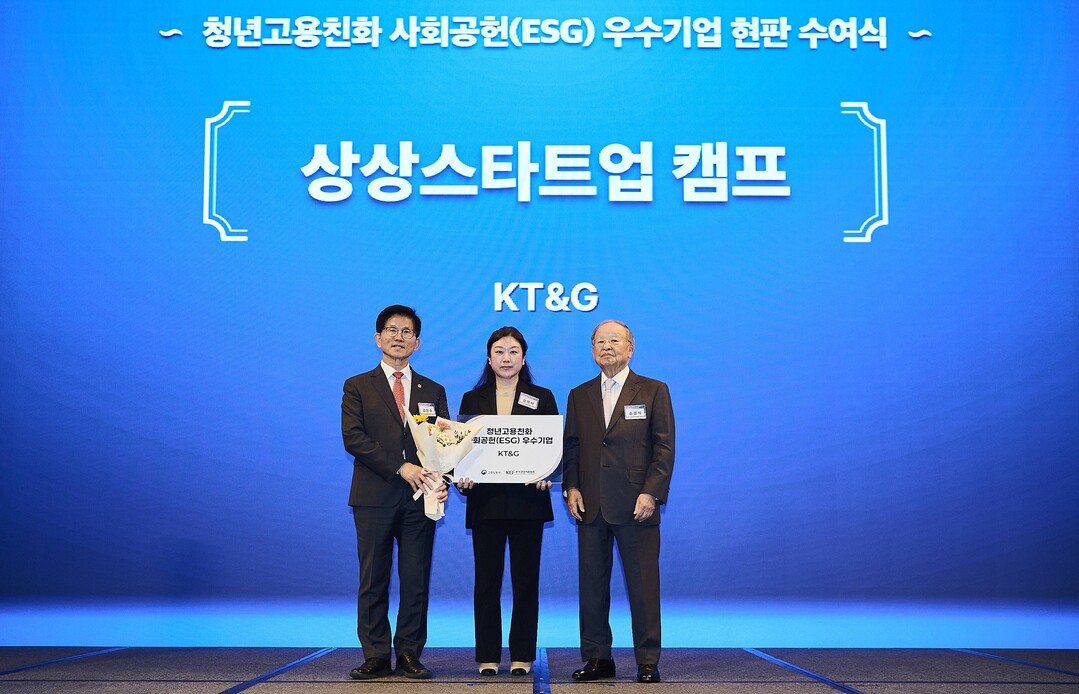 [하비엔뉴스 = 윤대헌 기자] KT&G는 지난 28일 고용노동부와 한국경영자총협회가 개최한 ‘청년도약 멤버십 컨퍼런스’에서 청년고용친화 사회공헌(ESG) 우수기업에 선정됐다고 29일 밝혔다.