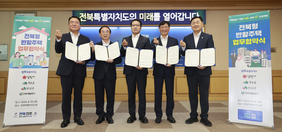 [하비엔뉴스 = 이수준 기자] 전북특별자치도는 19일 도청에서 남원시·장수군·임실군 및 전북개발공사와 '전북형 반할주택' 1단계 사업의 성공적 추진을 위한 업무협약을 체결했다.