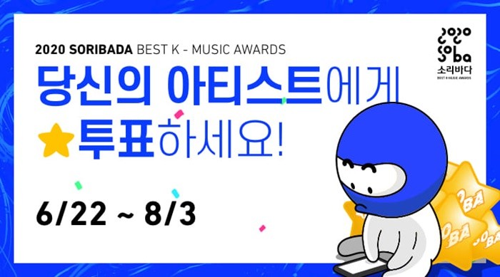 ‘2020 소리바다 베스트 케이뮤직 어워즈(2020 SORIBADA BEST K-MUSIC AWARDS, 이하 ‘2020 소리바다 어워즈’)’ 측은 22일 소리바다 모바일 앱을 통해 본 시상식의 ‘본상’ 투표를 오픈했다.