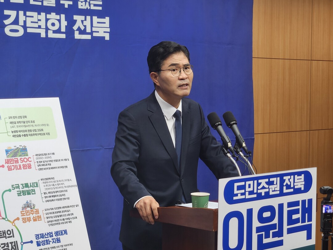 이 후보는 7일 기자회견을 열고 ‘대한민국에서 가장 일 잘하는 전북 만들기 준비서’를 발표하며, 재생에너지 확대와 지역 경제 활성화, 미래 산업 육성 등을 중심으로 한 ‘전북 대전환 7대 프로젝트’를 공개했다.