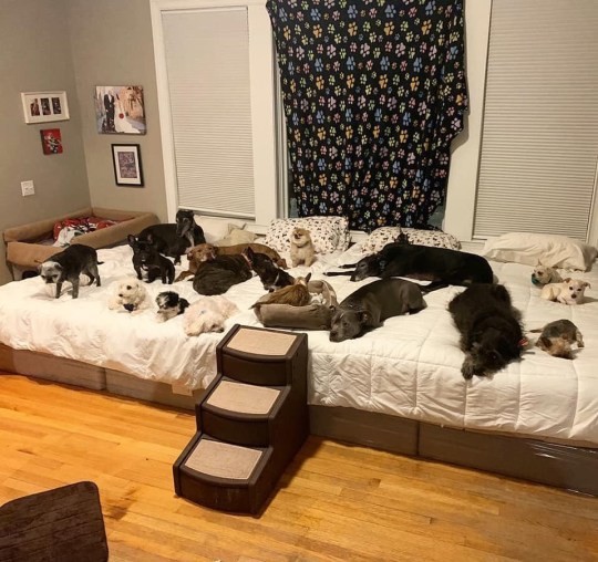 매일 밤 대부분의 반려견과 함께 잠을 자는 마리사는 "침실에는 킹사이즈 침대가 나란히 배치돼 있는데 많은 반려견들이 우리와 함께 자고 싶어하기 때문이다."고 말했다.
