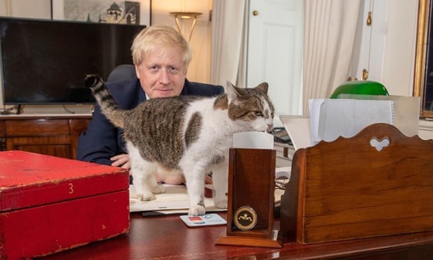 고양이 래리(Larry)는 다우닝가를 자유롭게 오가며 돌아다녔고, 이번 주 화요일 보리스 존슨(Boris Johnson) 영국 총리가 중환자실에서 집중 치료를 받기 위해 입원 대기하고 있을 때 사진에 같이 잡히기도 했다.