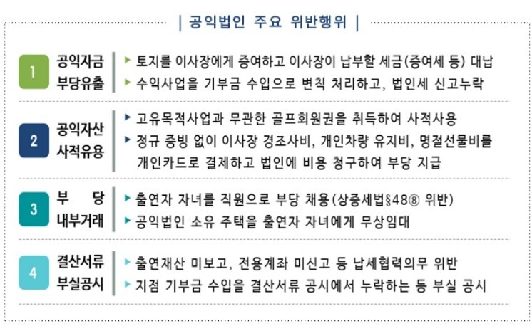 | 공익법인 주요 위반 사례. [자료=국세청] |