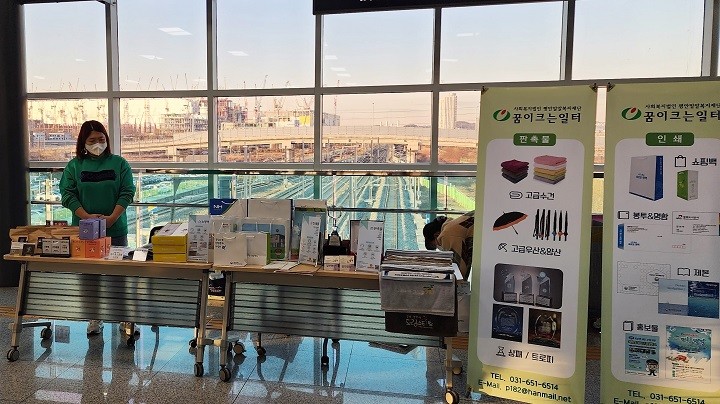 SRT 평택지제역은 역사 3층 맞이방에 평택시 ‘꿈이크는일터’ 임시매장을 열고, 수건과 양산, 우산 등의 판촉물과 쇼핑백, 명함, 봉투 등의 인쇄물 판로를 지원한다.