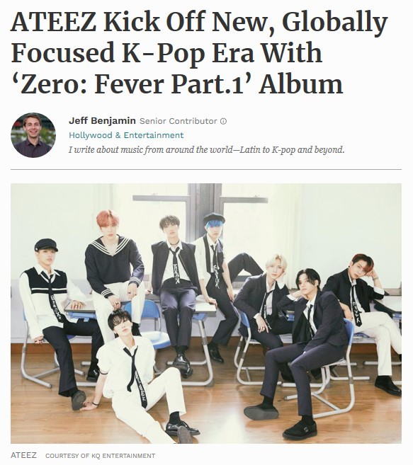 이를 두고 미국 포브스(Fobes)에 기고된 ‘제프 벤자민’의 칼럼에서는 ‘이 앨범은 전 세계적으로 주목 받는 K팝 시대의 서막이다(ATEEZ Kick Off New, Globally Focused K-Pop Era With ‘Zero: Fever Part.1’ Album.)”라고 언급되며 더욱 눈길을 끌었다.