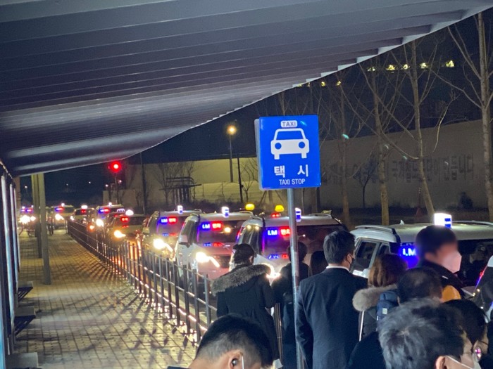 | ▲5일 발생한 KTX-산천 궤도 이탈사고 후속 조치와 관련,SR과 진모빌리티가 공동으로 i.M택시를 배차해 새벽에 도착한 승객들의 귀가를 도왔다. |