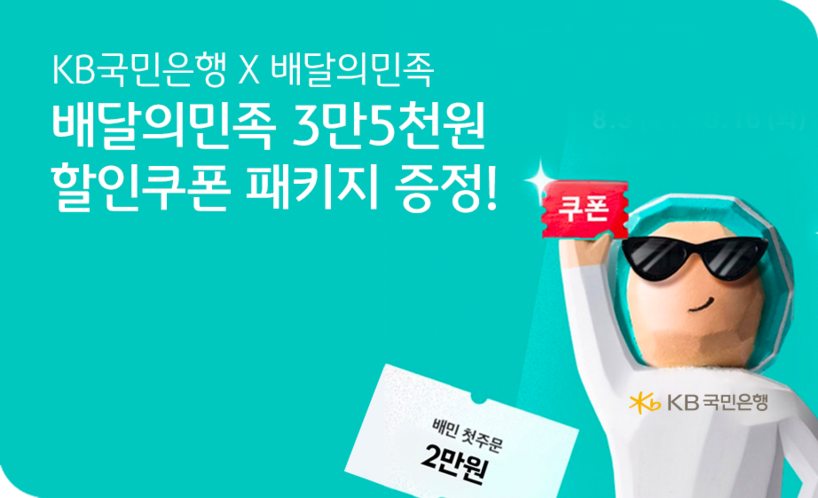 | ▲KB국민은행은 배달플랫폼 배달의민족과 제휴를 통해 ‘KB국민은행X배달의민족’ 이벤트를 실시한다. [사진=KB국민은행] |