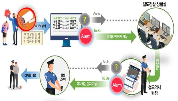 이를 통해 주요 역사에서 범죄 발생 시 AI CCTV가 탐지해 철도경찰에게 즉각 통보할 수 있는 체계를 마련한다는 계획이다. 또 주요 역사의 3D 실내지도에 AI CCTV 위치를 가상으로 설치하고, 입체 분석을 통해 CCTV 위치와 화각, 영상판독이 가능한 거리 등을 최적화해 사각지대를 최소화할 예정이다.