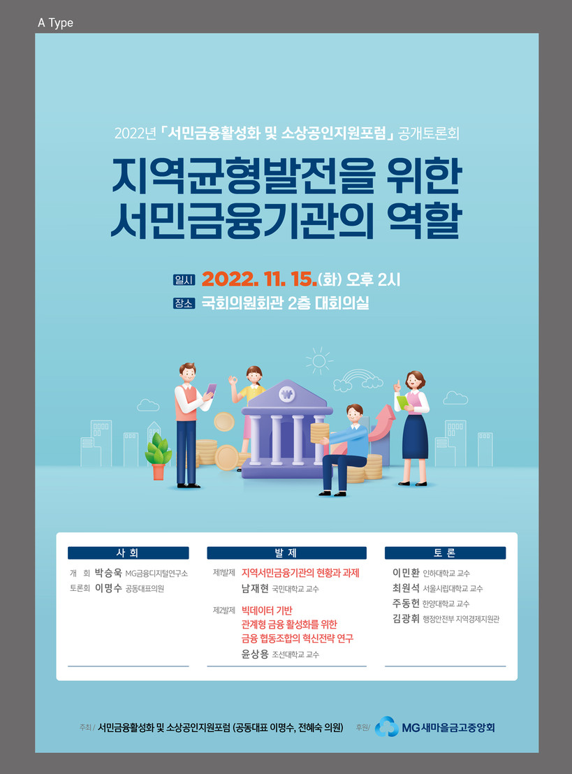 | ▲ 2022년 서민금융활성화 및 소상공인지원포럼 공개토론회 포스터. [사진=새마을금고중앙회] |