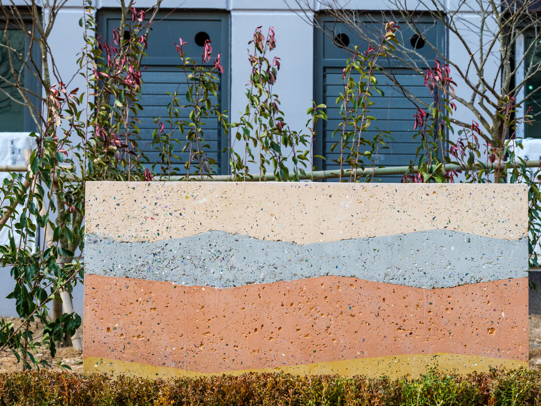 화장품 공병 재활용 재료를 초고성능콘크리트(UHPC)에 섞어서 제작된 건축용 테라조 타일은 힐스테이트 수지구청역과 힐스테이트 푸르지오 수원에 설치된 티하우스에 적용되는 등 다양한 조경 공간에 적용되고 있다.