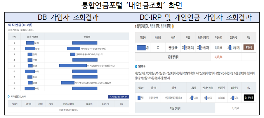 퇴직연금 가입자는 금융감독원 홈페이지 ‘통합연금포털’을 통해 퇴직연금제도별로 적립된 자신의 모든 퇴직연금 적립금을 조회·확인할 수 있다.