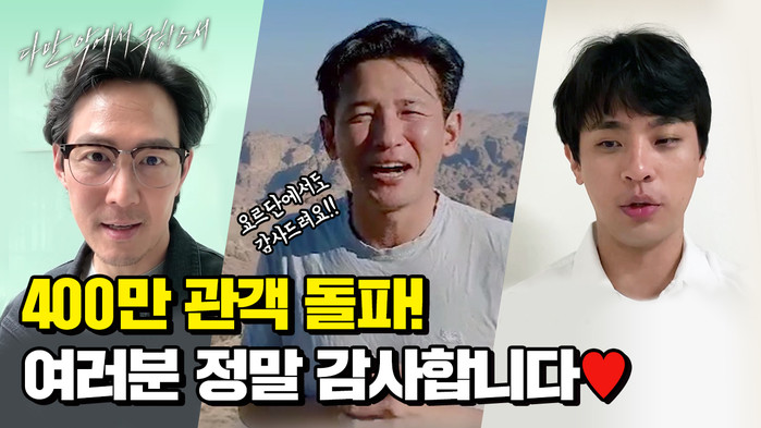 한편 '다만 악에서 구하소서'의 주역들도 400만 관객 돌파 소식에 감사 인사를 전했다. 요르단에서 촬영중인 황정민의 따뜻한 감사 영상은 물론, 이정재, 박정민 또한 스케줄 틈틈이 특별 영상을 촬영해 직접 전달했다.