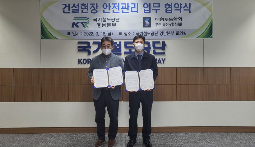 [하비엔=문기환 기자] 국가철도공단 영남본부는 지난 18일 중대재해의 선제적 예방과 안전·품질 선진화를 통한 안전경영 이행을 위해 대한토목학회(부산·울산·경남지회)와 업무협약을 체결했다고 밝혔다.