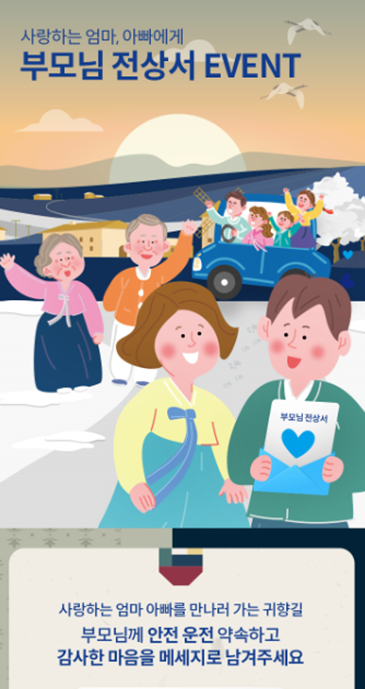 [하비엔=송현섭 기자] 삼성화재가 설 연휴를 앞두고 자사 자동차보험 가입 고객을 대상으로 ‘부모님 전상서’ 이벤트를 진행한다고 13일 밝혔다.