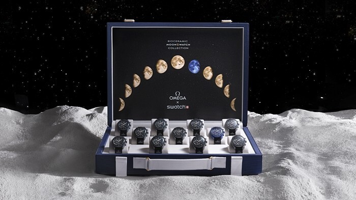 | 오메가 문스와치 문샤인 골드 11종을 담은 수트 케이스 에디션 [사진=그레이 릴레이션스] |