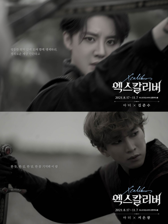 김준수와 서은광이 출연하는 뮤지컬 ‘엑스칼리버’는 고대 영국을 배경으로 왕의 숙명을 지닌 한 소년이 고뇌와 혼돈을 극복하고 성장해나가는 모습을 담은 작품이다. 2019년 월드 프리미어로 초연된 ‘엑스칼리버’는 약 12만명의 관객을 동원하며 흥행을 이끌었다.