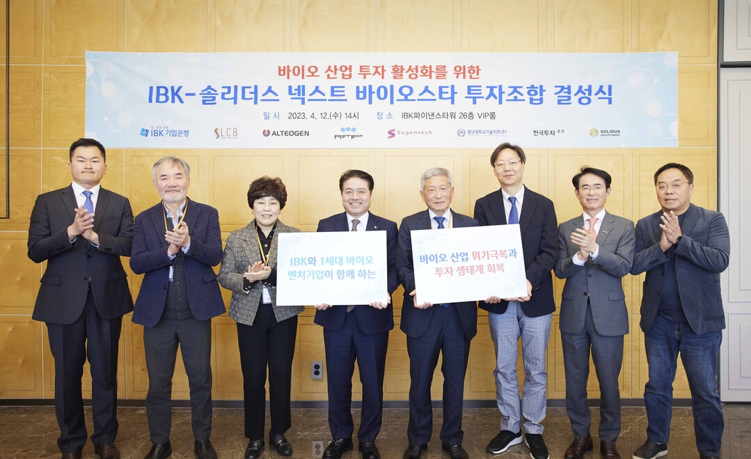 이 펀드는 IBK기업은행에서 100억원을 출자하고 레고켐바이오·알테오젠·수젠텍·펩트론 등 1세대 바이오벤처기업과 한국투자증권·충남대기술지주가 공동 출자한다. 펀드운영은 바이오 분야 전문 VC(벤처캐피탈)인 솔리더스인베스트먼트가 맡는다.