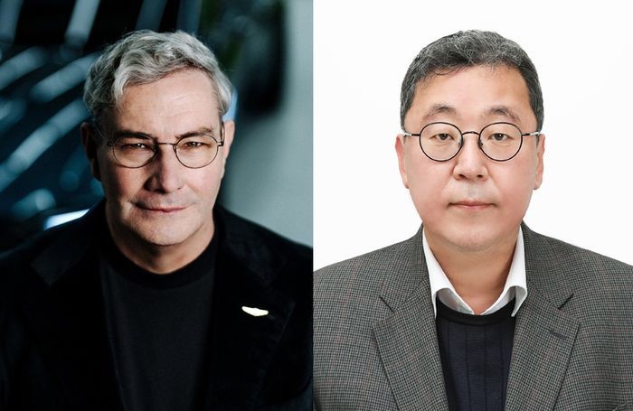 | ▲ 루크 동커볼체 현대차그룹 사장(왼쪽)과 이규복 현대글로비스 대표이사 부사장. [사진=현대자동차그룹] |