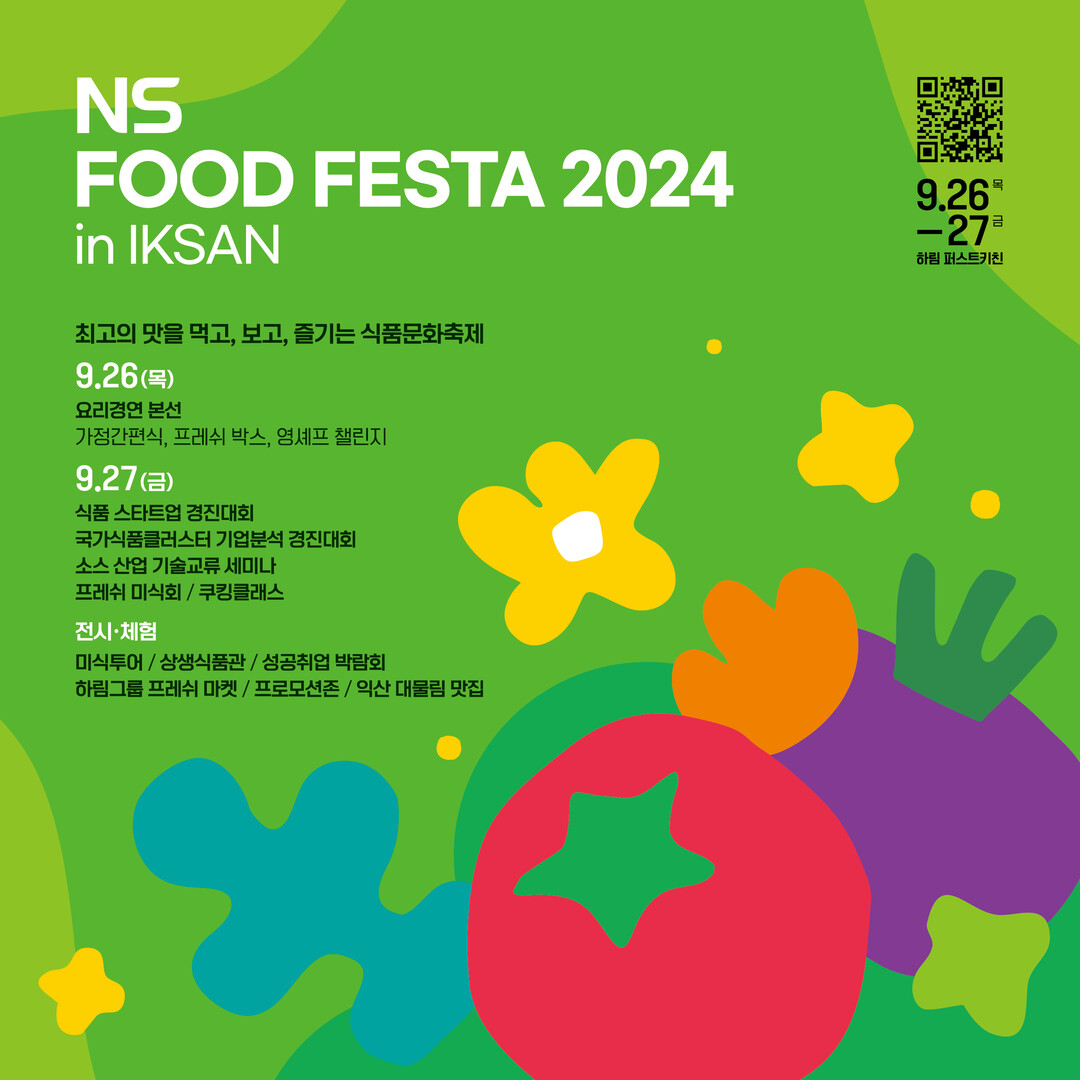 또 쿠킹클래스와 NS라이브커머스, 로컬푸드 시식 등의 프로그램이 진행되고, 식품 스타트업 경진대회와 소스산업 기술교류 세미나, NS 입점 설명회 등 중소 식품기업의 판로 확대를 위한 부스가 운영된다.
