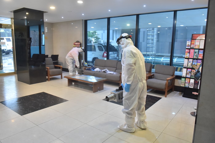 또한 A씨가 27일 머물렀던 숙소와 점심을 먹은 음식점, 렌터카 등에 대해 임시 폐쇄하고 방역 소독 조치를 완료했다. 렌터카들도 방역 소독을 했다.