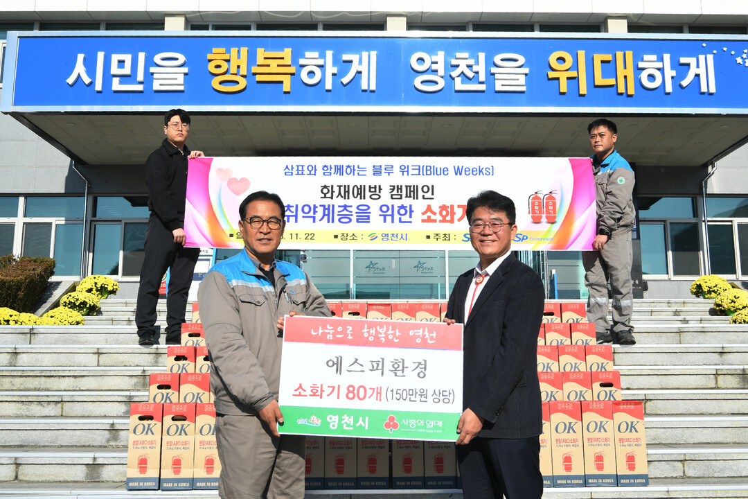 이에 따라 경북 영천(SP 환경), 충남 천안(SP S&A), 강원 삼척(삼표시멘트), 서울(삼표산업) 지역의 소방서와 시청에 소화기 총 540개를 기부했다. 소화기는 지역 내 화재취약 계층에 전달될 예정이다.
