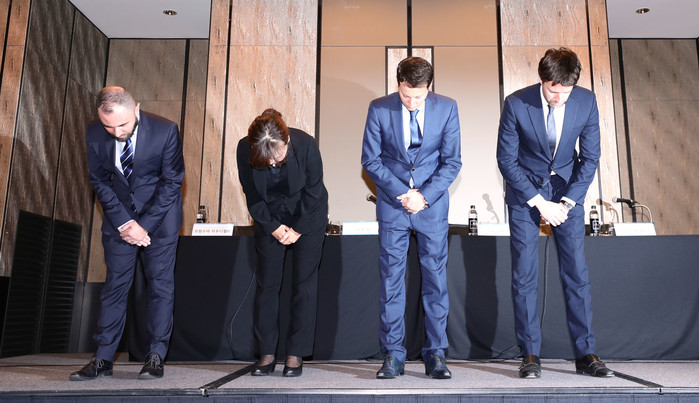 글래스 사장은 사과문 낭독 후 간담회에 참석한 이문정 한국 지사장, 크리스 반 에르프 한국·일본·뉴칼레도니아 영업 상무, 프랑수아 기우디첼리 아시아퍼시픽 사업 개발 담당과 함께 90도로 숙여 사과의 뜻을 전했다.