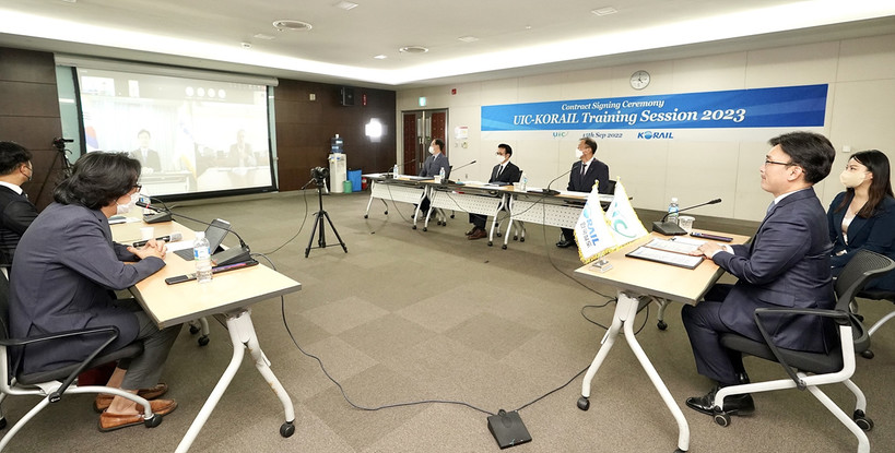 코레일은 지난 15일 대전사옥 회의실에서 나희승 코레일 사장과 프랑소와 다벤느 국제철도연맹(UIC) 사무총장이 화상으로 ‘2023년 아시아-태평양 지역 철도관계자 국제연수’ 운영 계약을 체결했다고 밝혔다.