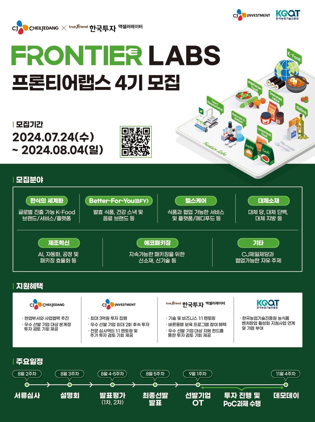 | CJ제일제당이 스타트업 발굴·육성 프로그램 ‘프론티어 랩스’ 4기를 모집한다. [사진=CJ제일제당] |
