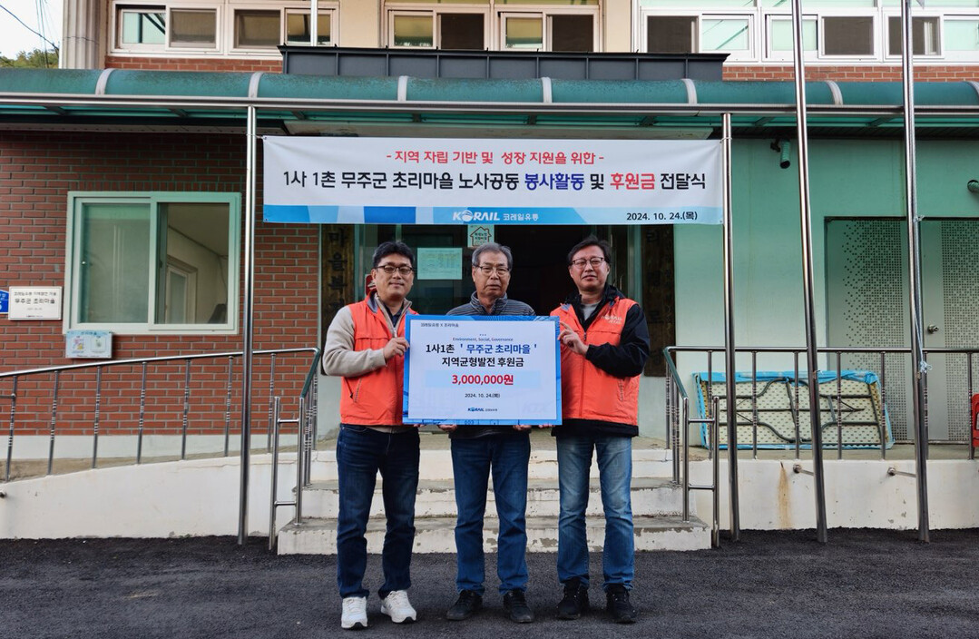 코레일유통은 지난 24일부터 1박2일 동안 전라북도 무주군에 위치한 1사1촌 자매결연마을인 초리마을을 찾아 후원금 300만원을을 전달하고 지역 주민과의 교류 활동을 진행했다고 28일 밝혔다.