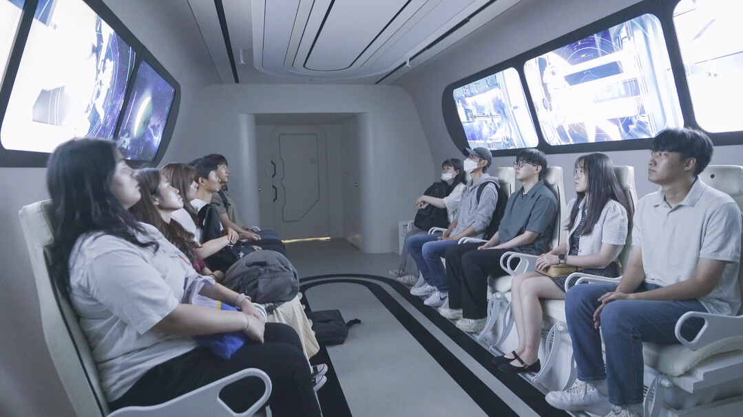 | SKT 투어 프로그램에 참가한 학생들이 미래 기술 체험관 티움을 관람하고 있다.[사진=SKT] |
