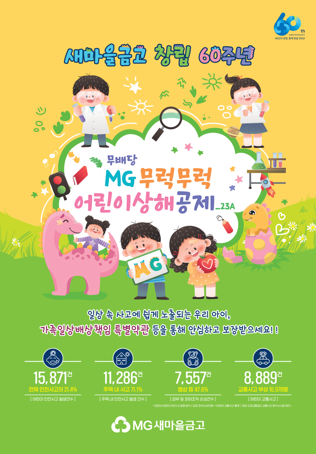 | 새마을금고가 창립 60주년과 5월 가정의 달을 맞아 ‘무배당 MG 무럭무럭 어린이 상해공제’를 새롭게 선보인다. [사진=새마을금고중앙회] |