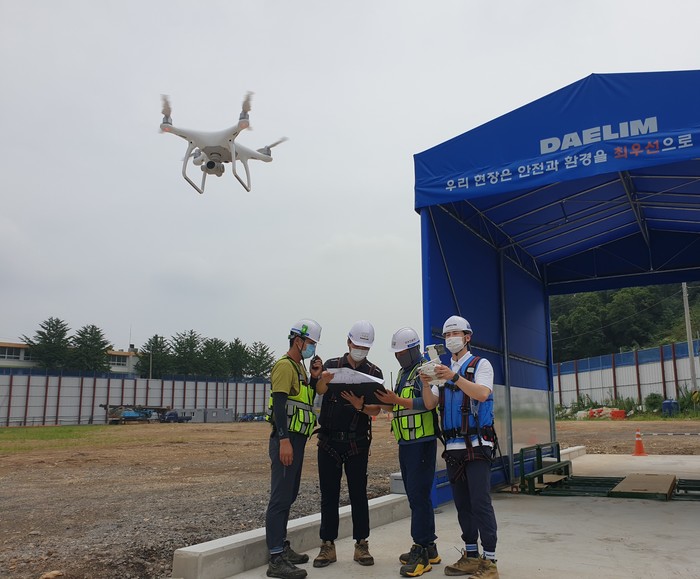 하지만 사람이 일일이 수작업으로 측량을 진행하다 보니 업무 효율이 낮았다. 이를 개선하기 위해서 대림산업은 드론을 활용해 측량을 실시하고 있다. 드론이 측량한 자료는 대림산업 기술개발원 드론 플랫폼에서 3차원 영상으로 구현되어 다양한 정보와 함께 협력업체에 제공된다.