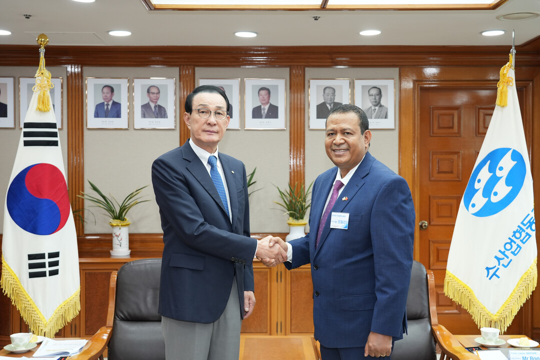 [HBN뉴스 = 홍세기 기자] 노동진 수협중앙회장이 최근 로제리오 아라우주 멘돈사 동티모르 직업훈련고용청 국무장관과 양국 간 수산분야 인력 교류 확대와 정보공유를 위한 협력 방안을 논의했다.