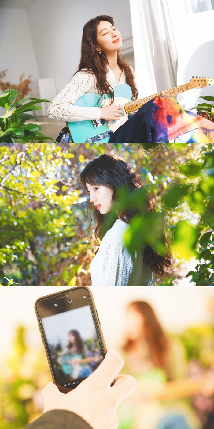 수지는 밝은 햇살이 비치는 방 안, 포근한 침대 위에 누워 뒹굴거리며 달콤한 휴식을 즐기기도 하고, 무언가를 골똘히 생각하며 글을 써내려가다가, 책을 읽기도 하고, 기타 연주에 한껏 몰입하는 등 다양한 장면들 속에서 끊임없이 여신 미모를 뽐내며 시선을 사로잡고 있다. 음악에 흠뻑 빠진 듯 행복한 표정, 푸르른 녹음 속 싱그러운 미소, 장난기 넘치는 웃음까지 여러 표정들을 지어 보이며 ‘출구 없는 매력’을 선보이는 것.