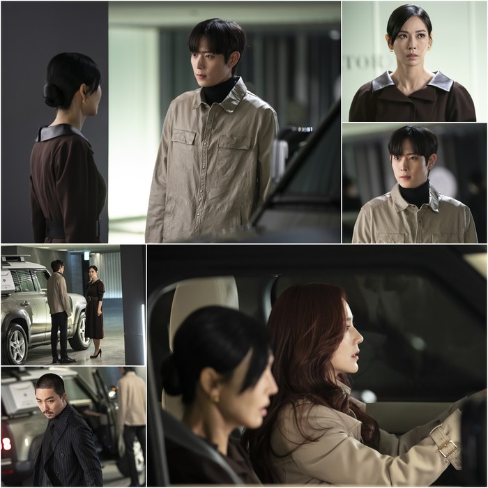 이와 관련 유진, 김소연, 김영대가 의미심장한 분위기를 드리우며 마주하고 있는 ‘주차장 회동’ 현장이 공개돼 궁금증을 폭발시키고 있다. 극중 주차장으로 온 천서진이 미리 기다리고 있던 오윤희와 만나는 장면. 천서진이 걱정과 불안감이 뒤섞인 눈빛으로 주석훈을 바라보고 있는 반면, 주석훈은 결연한 눈빛을 번뜩이고 있다.