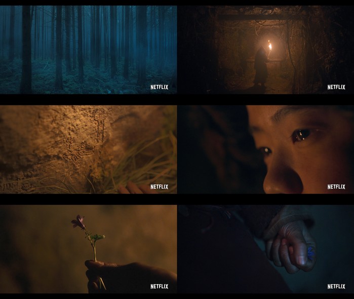 공개된 영상은 스산한 어둠 속, 횃불을 들고 깊은 동굴에 들어선 어린 아신이 바위에 쓰여있는 의문의 표식을 발견하며 시작된다. 이어 의문의 꽃 생사초와 함께 “죽은 자를 되살리는 풀, 대가가 따를 것이다”라는 카피가 역병의 기원에 대한 단초를 제공한다. 북방에서 자라던 생사초가 어떻게 조선을 집어삼키게 되었는지, 역병의 시작이 드디어 베일을 벗는다.
