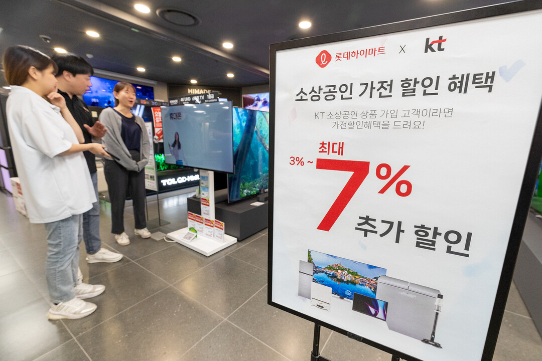 | KT는 롯데하이마트와 함께 소상공인 고객 대상으로 가전 할인 혜택을 제공한다. [사진=KT] |