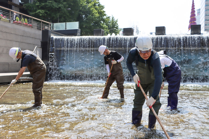 22일 포스코O&M에 따르면, 서울시설공단과 지난 5월 ‘청계아띠‘ 업무협약을 체결한 포스코O&M의 직원들이 매달 청계광장부터 동대문역까지 주변 플러깅 활동과 청계천 분수와 하상 이끼 제거 활동을 실시한다.