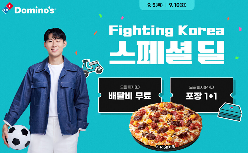 한편 도미노피자는 프랜차이즈 피자 업계 최초로 손흥민 선수와 전속모델 계약을 체결하고, 신제품 ‘K-Rib & 치즈 피자’를 출시했다.