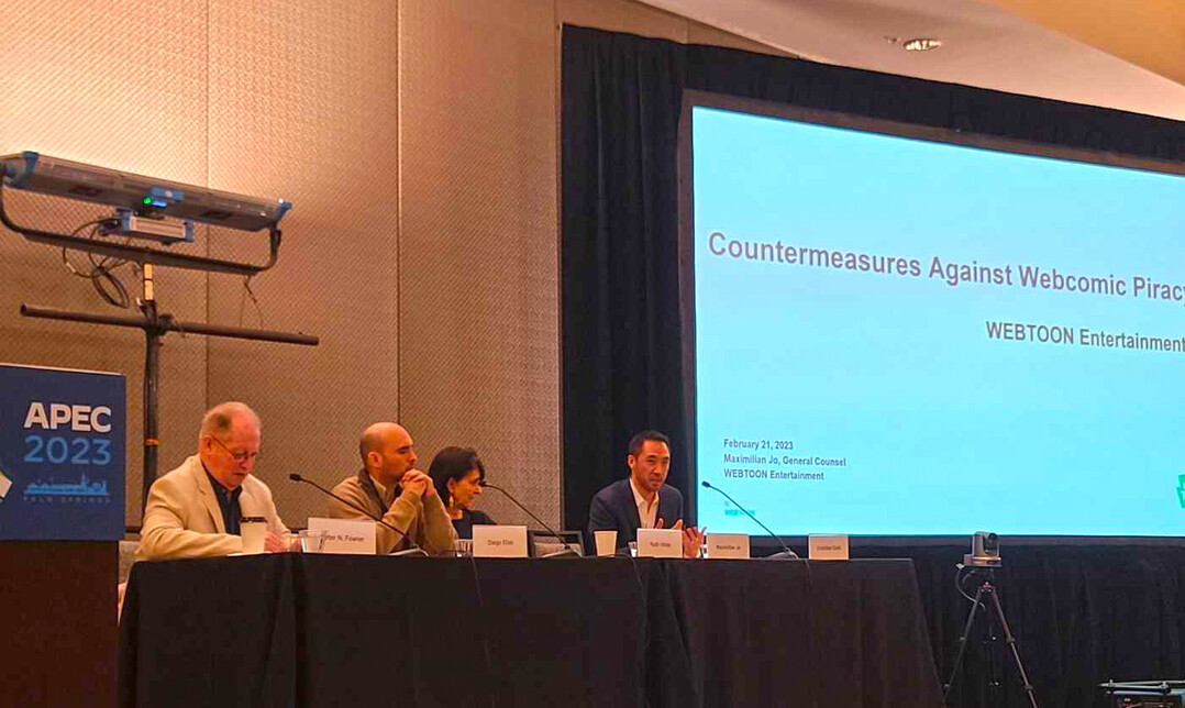 네이버웹툰은 지난 21일(현지시간) 미국 캘리포니아 팜스프링에서 열린 ‘APEC 지식재산 전문가 그룹(IPEG) 토론회’에 웹툰·웹소설 콘텐츠 기업 대표로 참석해 네이버웹툰의 저작권 보호 활동과 웹툰·웹소설 저작권 보호의 중요성에 대해 발표했다.