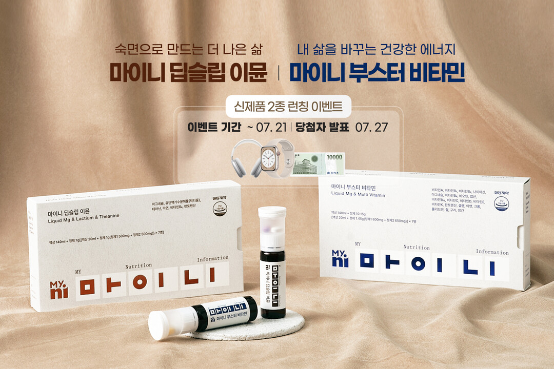 [하비엔뉴스 = 이길주 기자] 일동제약은 종합건강기능식품 브랜드 ‘마이니(MyNi)’의 신제품 2종 마이니 딥슬립 이뮨과 마이니 부스터 비타민 출시를 기념해 ‘리뷰 이벤트’를 진행한다고 11일 밝혔다.