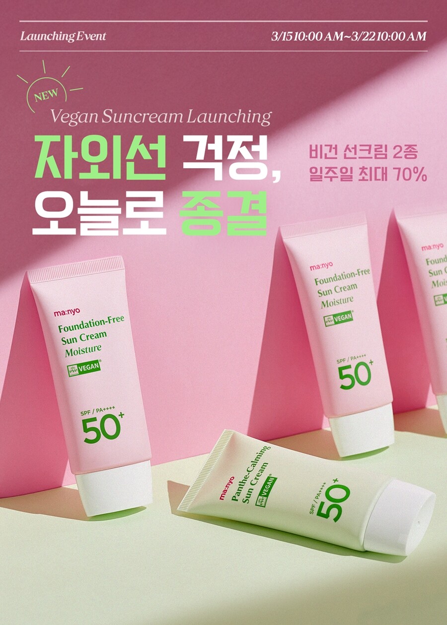 마녀공장은 비건 선크림 2종을 출시하고, 오는 22일 오전 10시까지 신제품 출시 기념 특별 프로모션을 진행한다고 밝혔다.