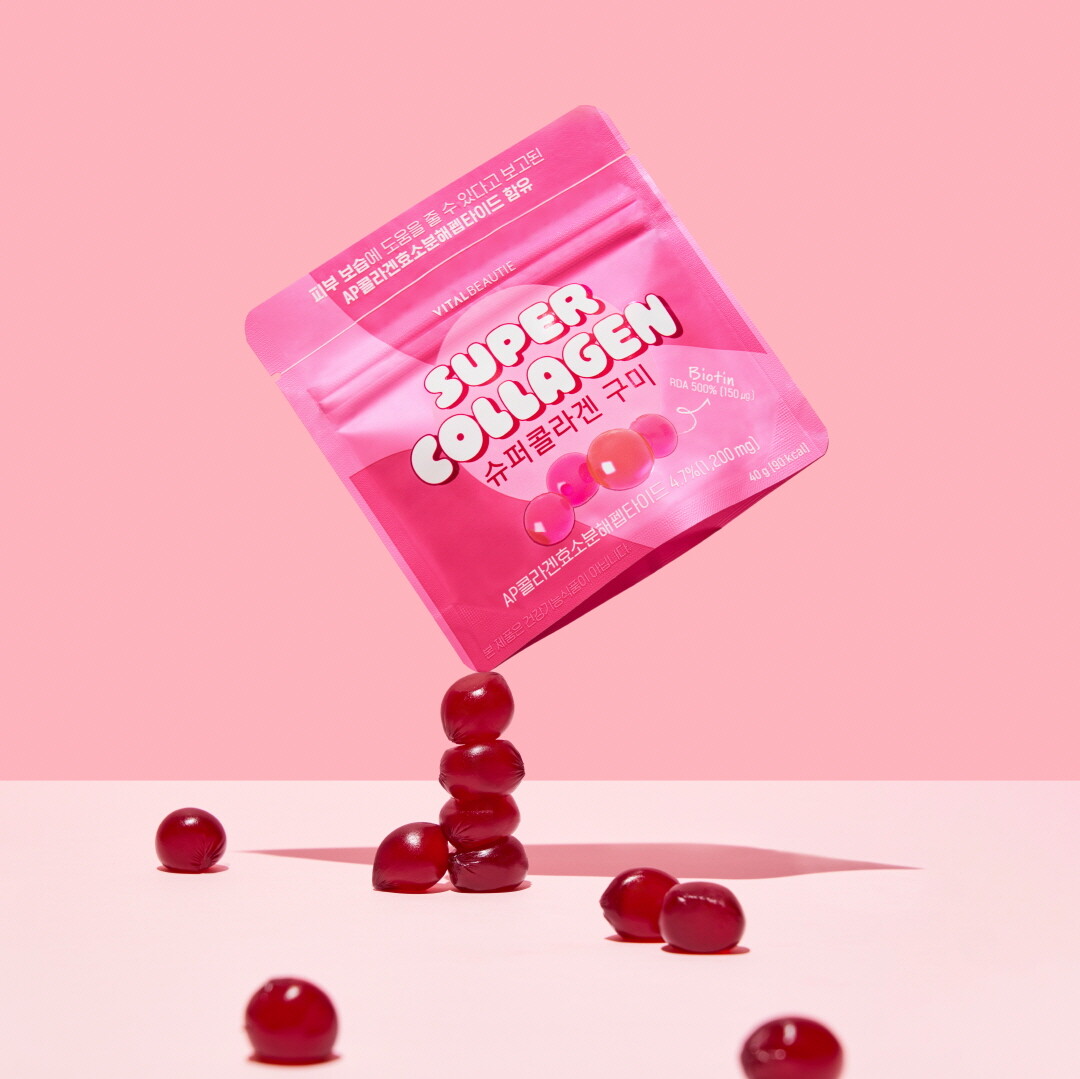 바이탈뷰티 관계자는 “슈퍼콜라겐 구미는 아모레퍼시픽만의 콜라겐 제형 기술을 통해 일반 젤라틴 구미와는 차별화된 품질과 식감을 선사한다”며 “크림슨포도추출물을 함유한 상큼한 맛과 쫀득한 식감에 정교한 가공공정을 거친 지방 0g의 안심 콜라겐 구미로, 섭취가 간편하고 90㎉로 부담없이 즐길 수 있다”고 말했다.