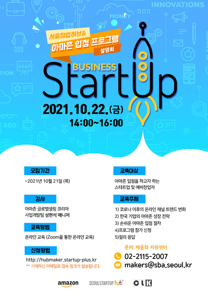서울시의 대표 창업지원 기관인 서울창업허브(SBA 운영, 대표이사 직무대행 박대우)는 아마존 글로벌셀링 코리아과 손잡고 ‘Business Start Up’ 프로그램에 참여 할 스타트업 및 예비 창업자를 오는 21일까지 모집한다고 밝혔다.