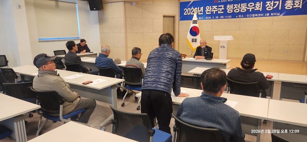 [HBN뉴스 = 이수준 기자] 완주군 행정동우회(회장 이방재)는 지난달 28일 봉동읍 민간협력센터에서 2026년도 정기총회를 개최했다고 밝혔다.
