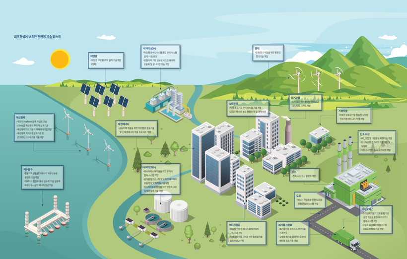 | ▲ 대우건설이 보유한 친환경 기술 리스트. [사진=대우건설] |