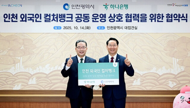 [HBN뉴스 = 이필선 기자] 하나은행(은행장 이호성)은 14일 오전 인천시청에서 인천광역시와 함께 ‘인천 외국인 컬처 뱅크’ 공동 운영을 위한 업무협약을 체결했다고 밝혔다.