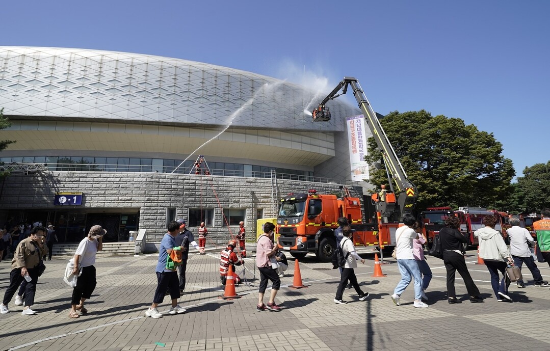 시는 지난해 9월 송파구 올림픽공원 핸드볼경기장에서 공연 중 화재가 발생한 상황을 가정해 시민 1000여명과 28개 유관기관이 참여한 대규모 현장훈련을 진행했다. 특히 지난해 새롭게 정비한 서울형 재난 대응 시스템도 종합 점검했다.