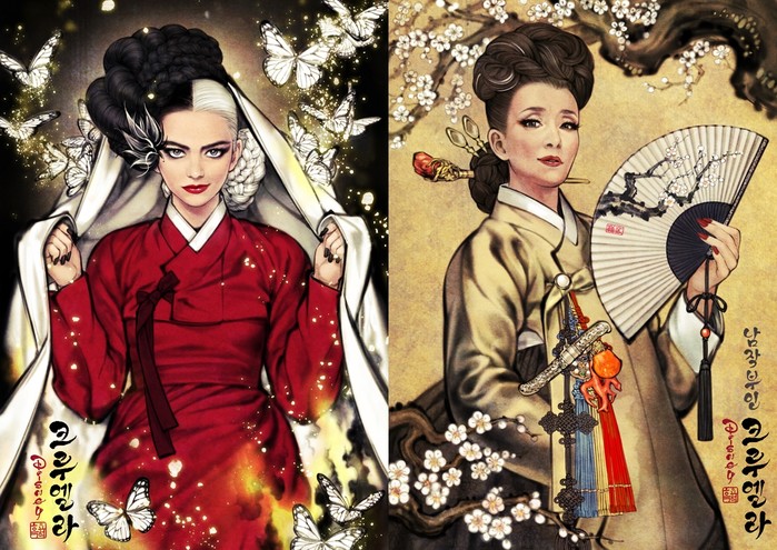 한국의 아름다움이 짙게 묻어있는 ‘흑요석’의 작품 역시 인상적이다. 강렬한 붉은 한복과 우아한 황금빛 한복을 입고 서로 다른 매력을 뽑내는 ‘크루엘라’와 ‘남작 부인’의 포스터는 앞선 ‘조윤진’ 아티스트의 포스터와 또 다른 매력으로 보는 이들을 매료시킨다. 극중 극과 극 패션 스타일로 런던을 뒤흔든 두 사람의 불꽃 튀는 대결을 한국적인 비주얼로 표현해내 감탄을 자아낸다.